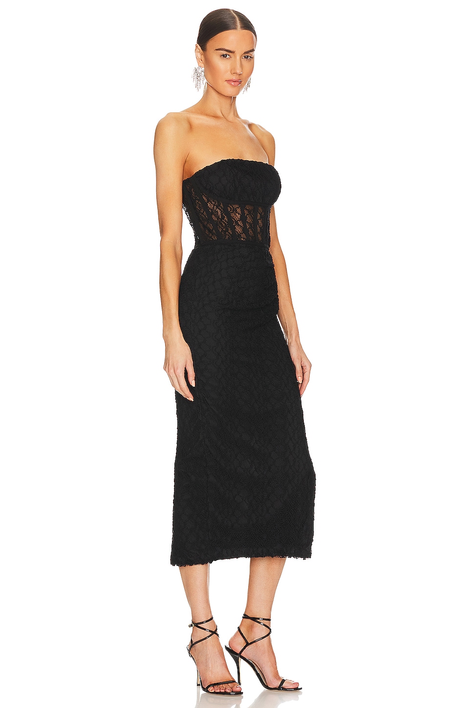NICHOLAS Raina Strapless Corset Lace Midi Dress