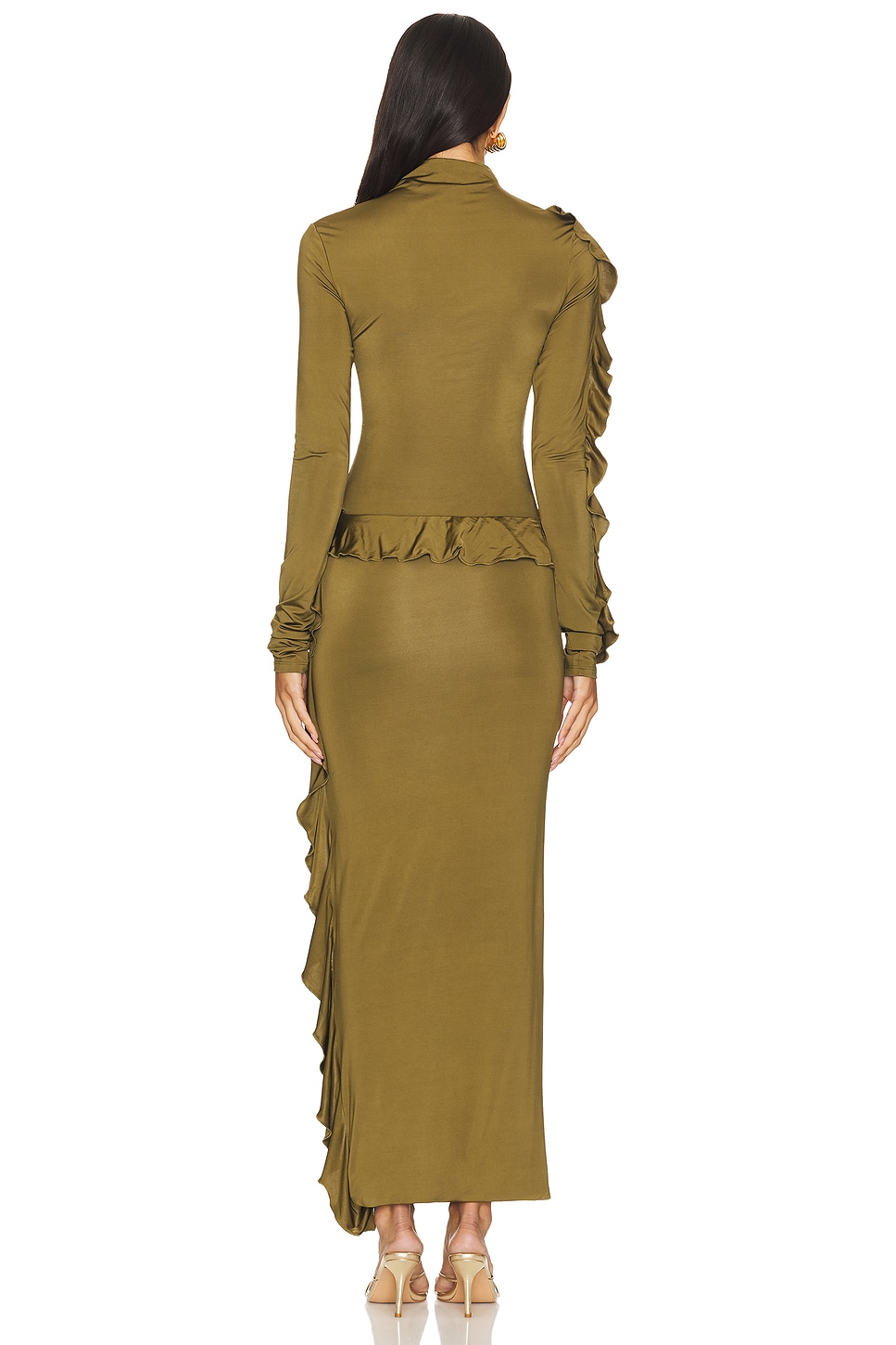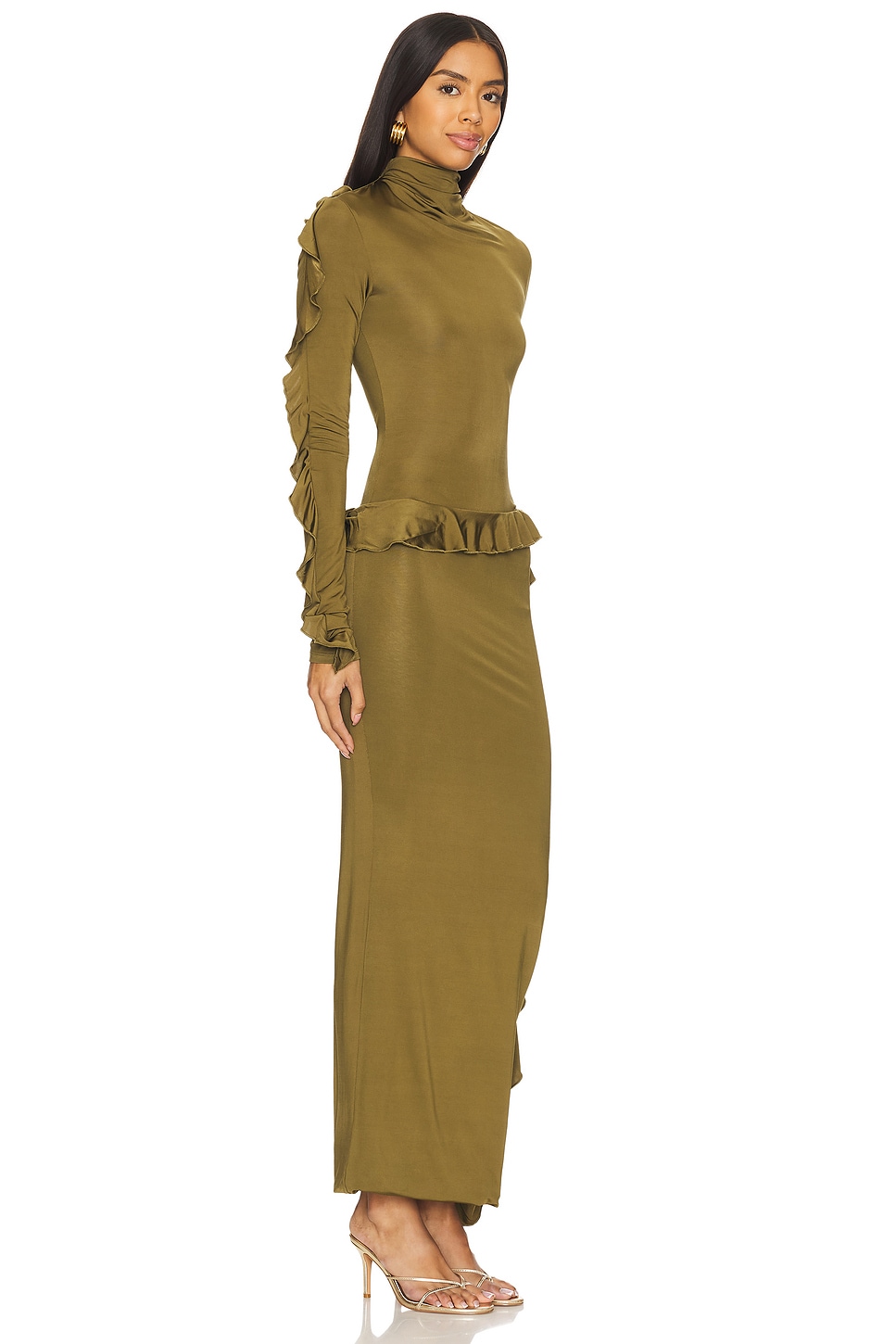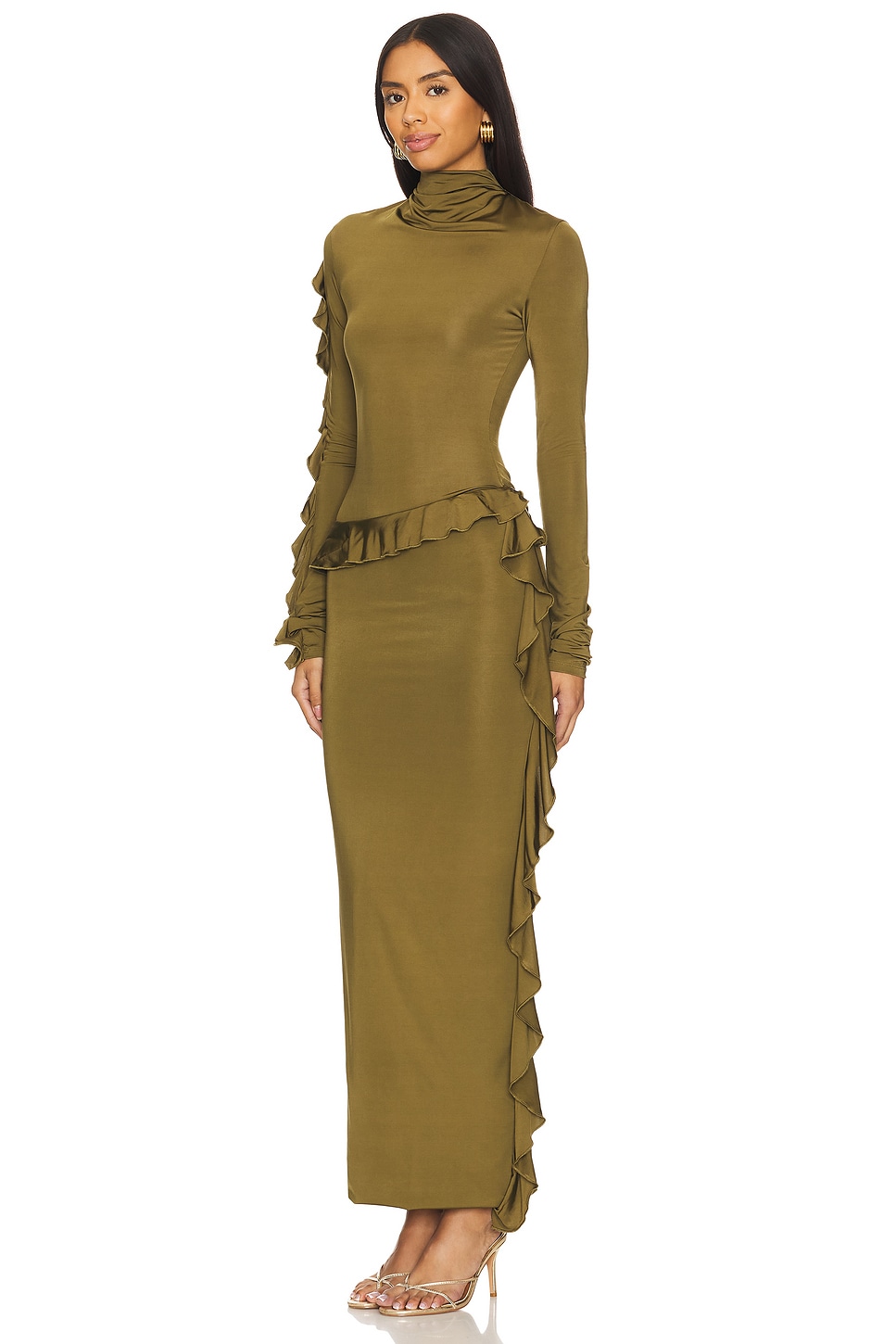 93% viscose, 7% spandex Made in China Hand wash Fully lined Pull-on styling Attached bodysuit styling Sholder seam to hem measures approx 168 cm in length Revolve Style No. PGEO-WD24 Manufacturer Style No. MIRAD001 |
