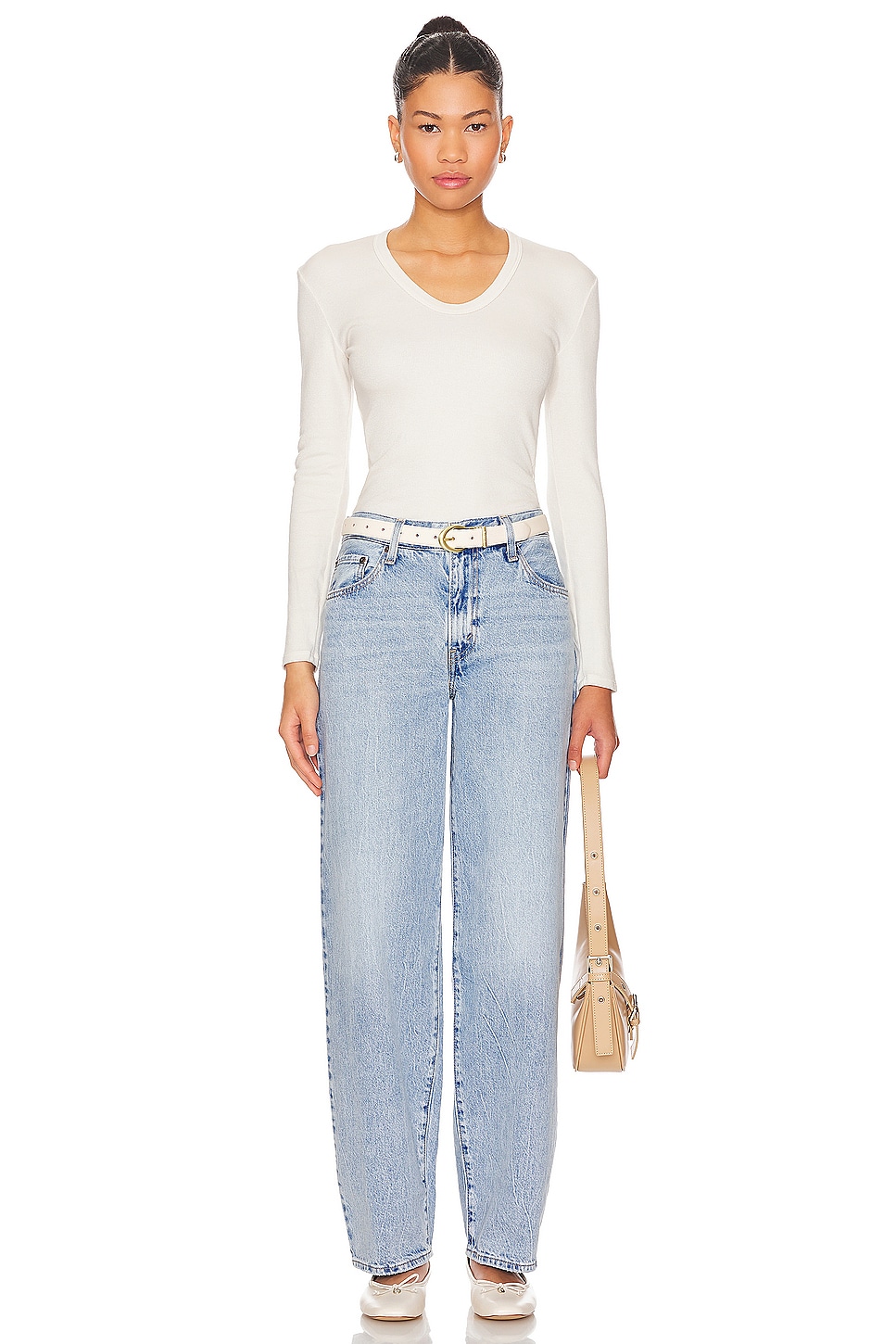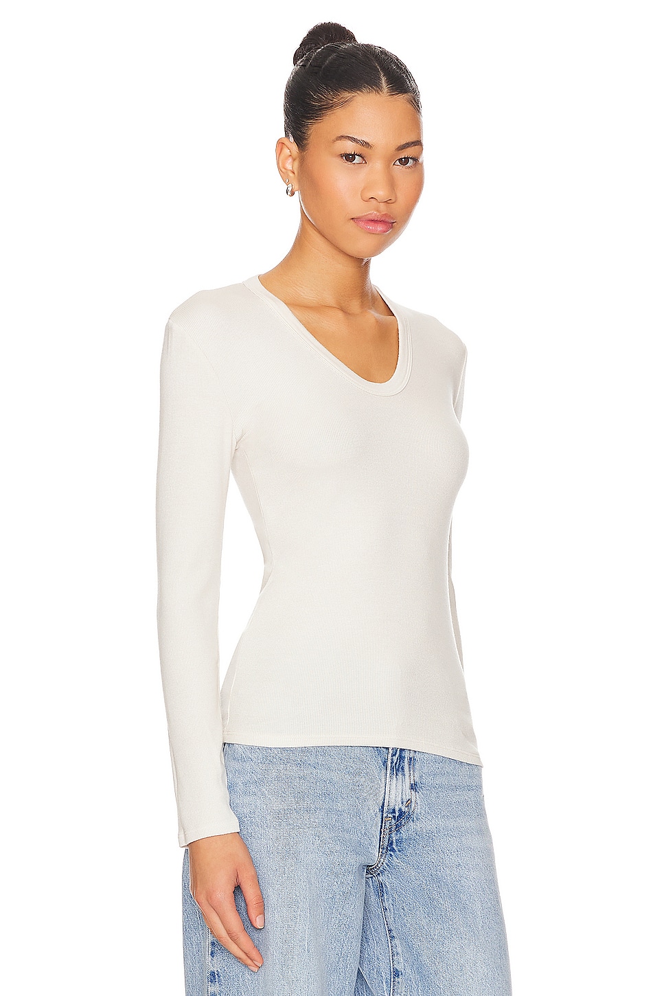 perfectwhitetee U Neck Rib Long Sleeve