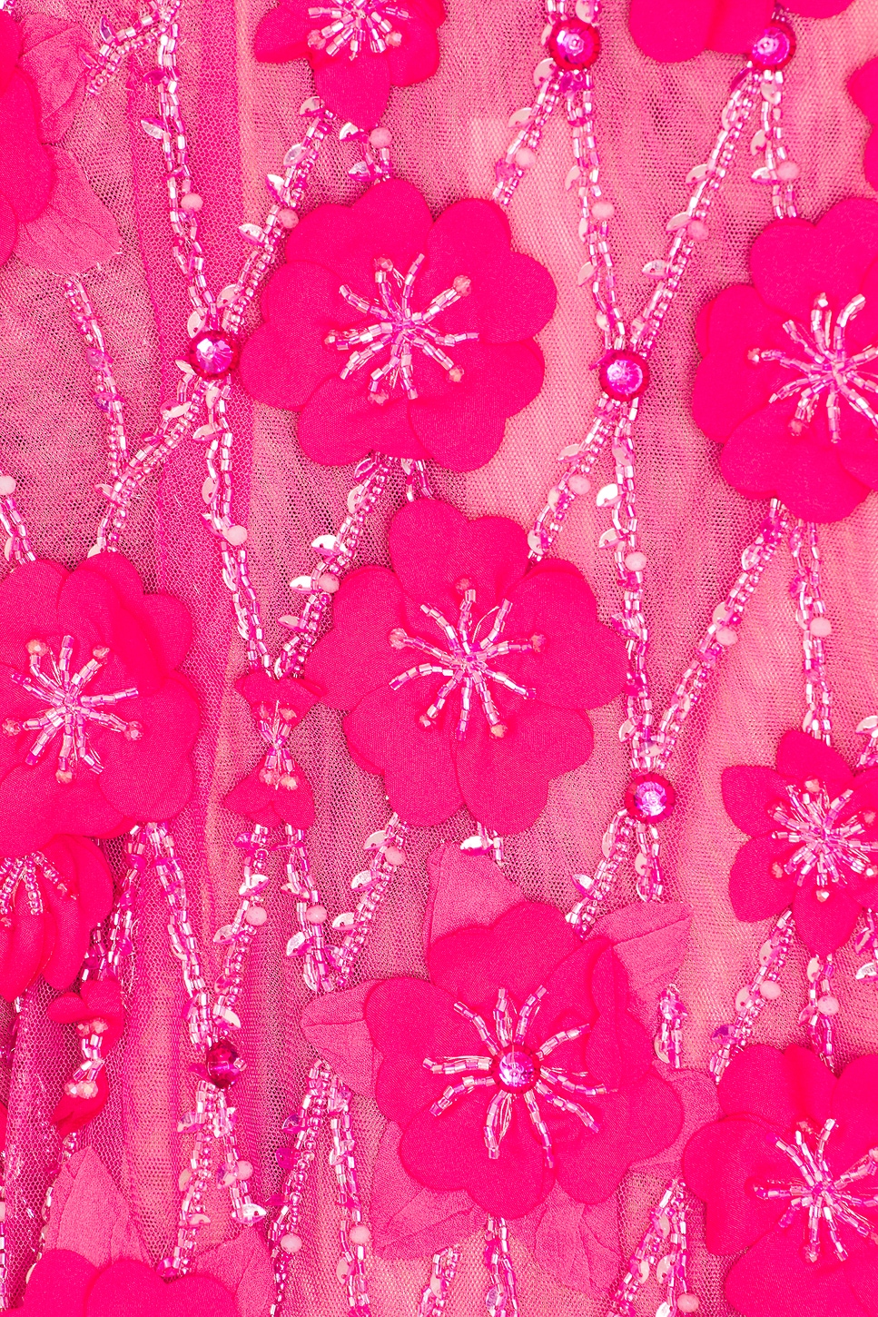 100% nylon Made in India Dry clean only Fully lined Hidden back zipper closure Midweight mesh fabric with floral appliqu��s throughout Revolve Style No. RGIL-WD24 Manufacturer Style No. 24SSRG62027.BER |