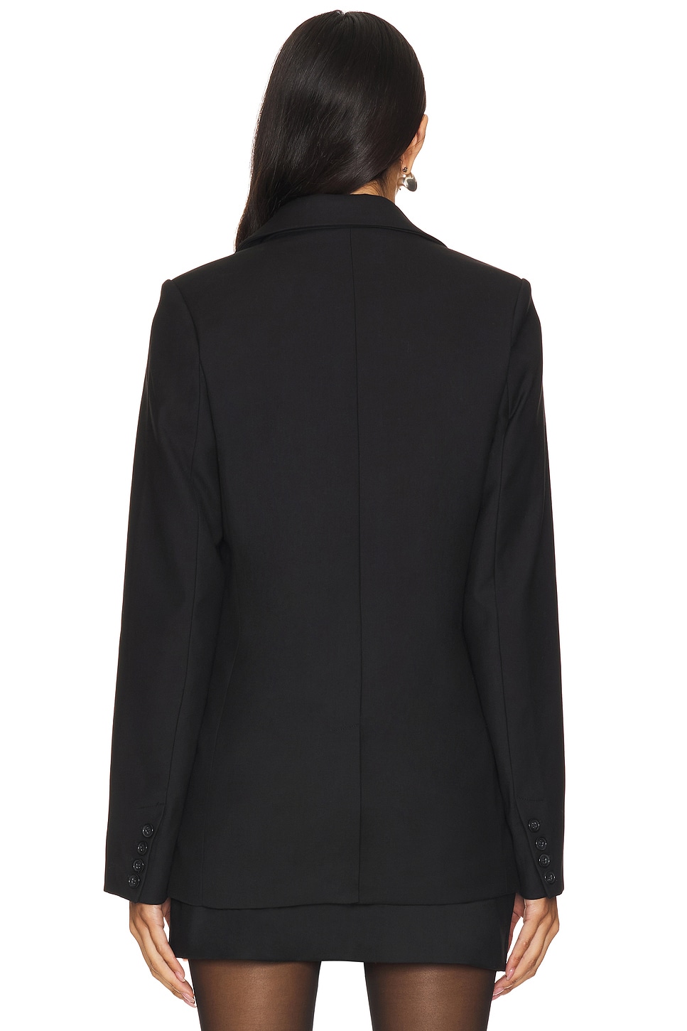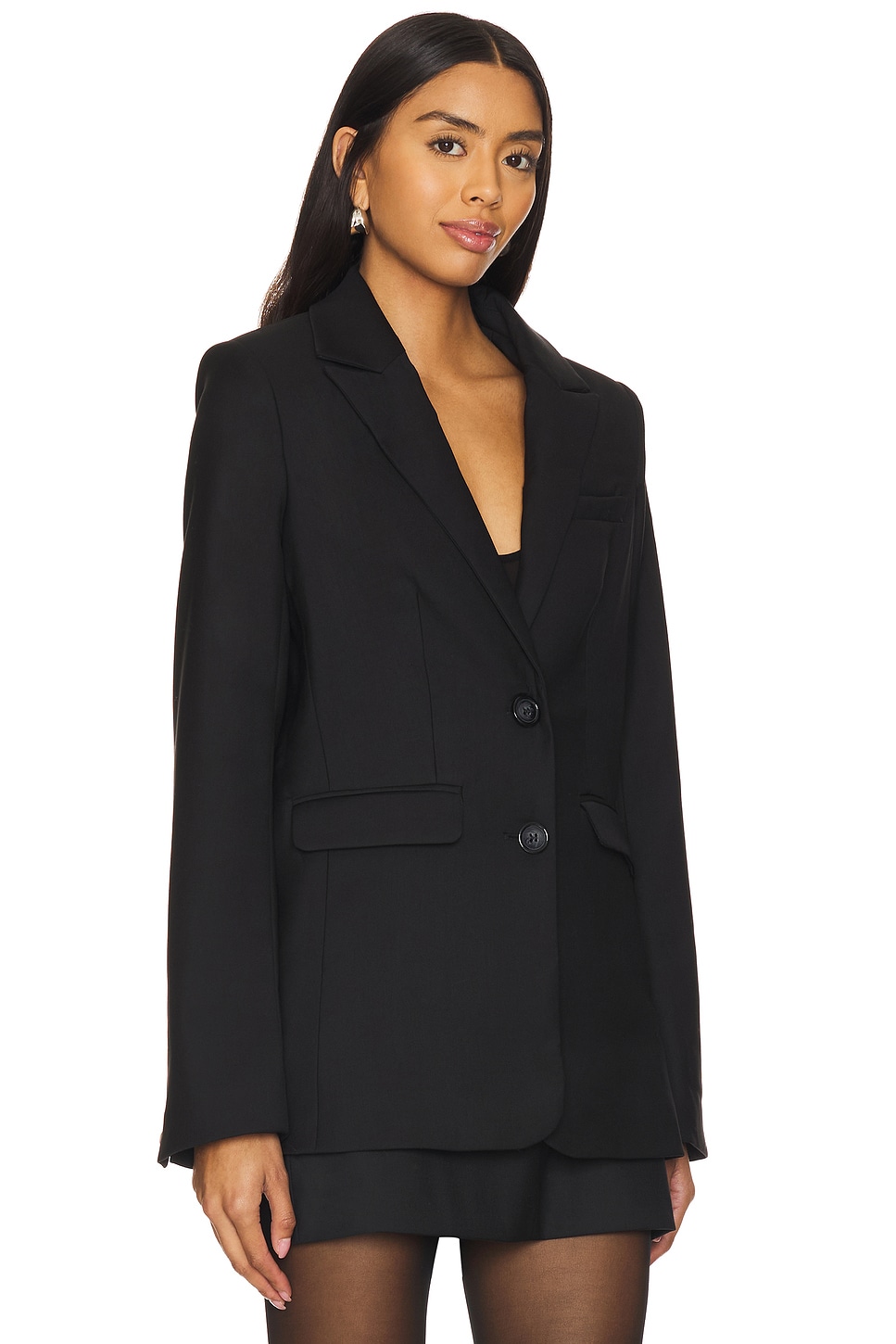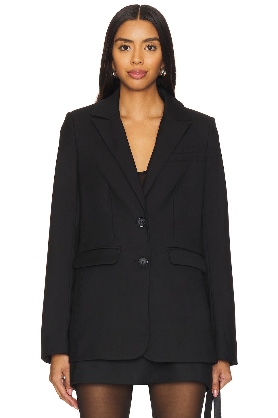Self: 81% polyester, 19% viscose Made in China Machine wash Front button closure Front faux flap pockets and faux welt breast pocket Padded shoulders Revolve Style No. 4THR-WO7 Manufacturer Style No. 4RWL91108 |