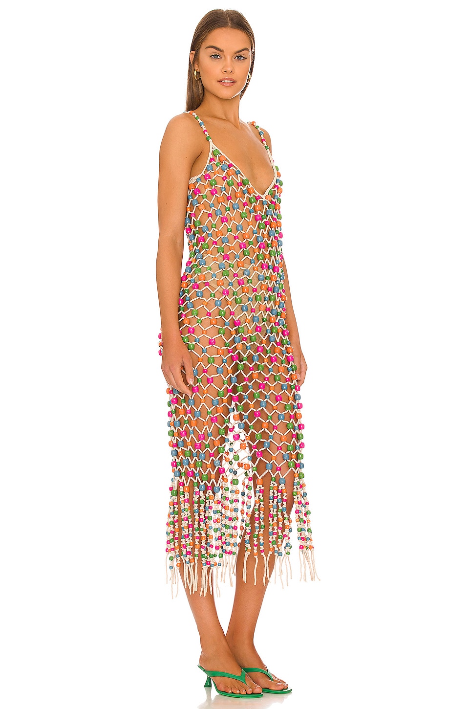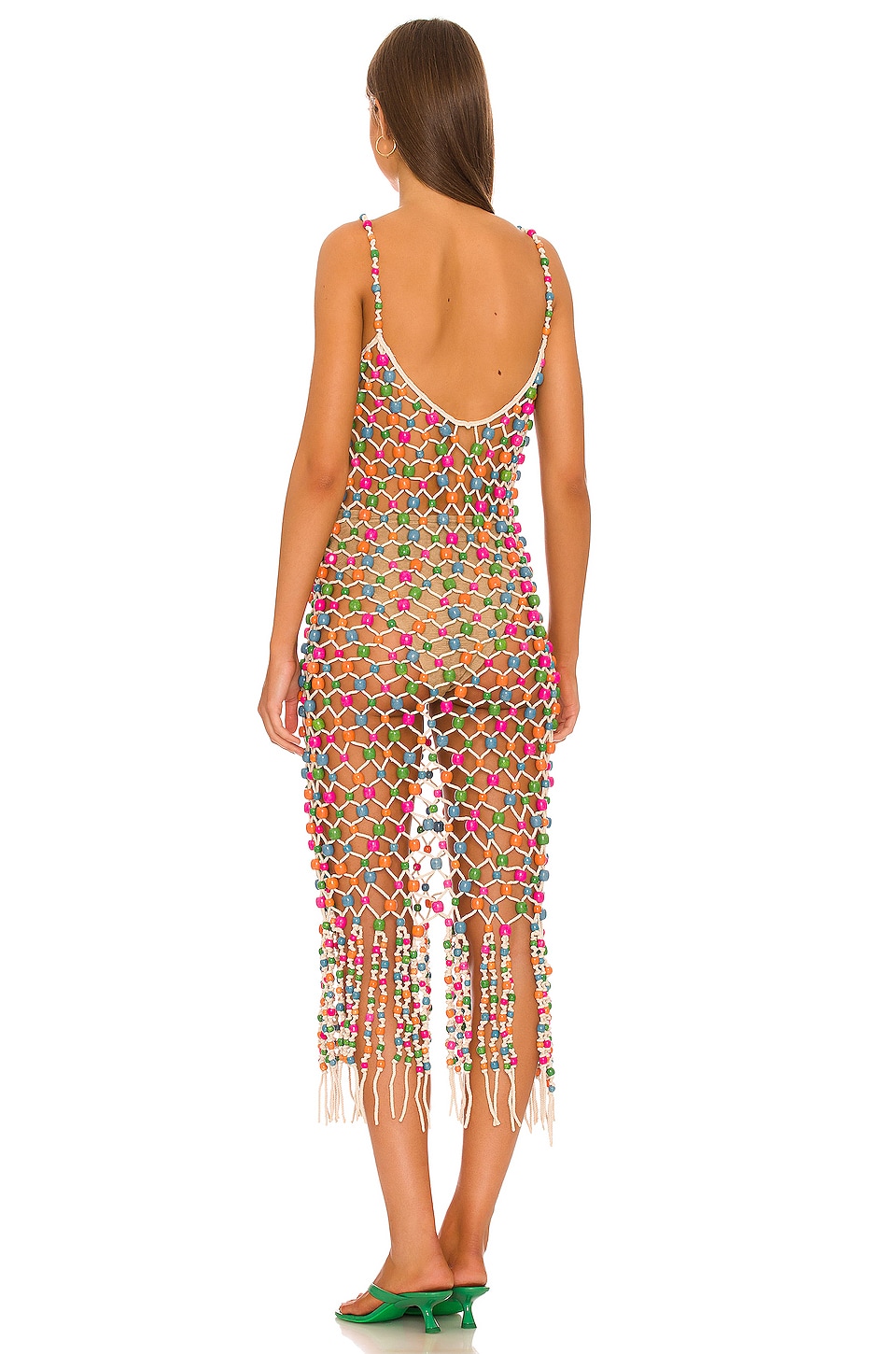 | 100% cotton Made in India Dry clean only Unlined Pull-on styling Open knit fabric with multi-color wooden bead charms Fringe hem Revolve Style No. ROFR-WD314 Manufacturer Style No. SS22-4976 Retrofete, launched in 2018 by co-founders Ohad Seroya and Aviad Klin, embodies the glamour and opulence of decades past. Having gained notoriety for its sequin-clad party frocks, the New York-based label has evolved into a collection of daring, top-to-toe designs that seamlessly transform from day to night. Regardless of where she goes, you can count on the Retrofete girl to bring the party. |