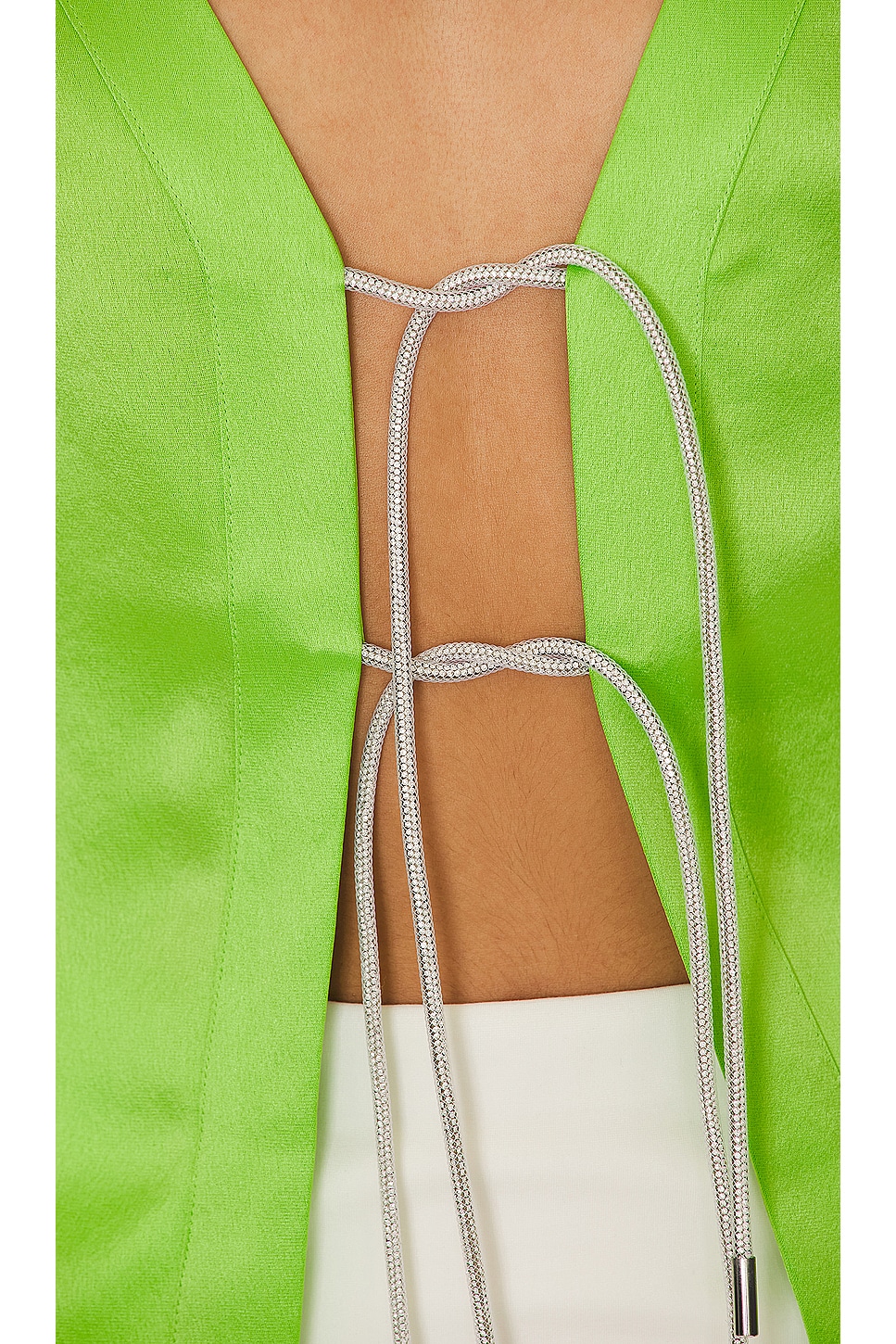 76% acetate, 24% polyester Made in China Dry clean only Metallic front tie closures Flared cuffs with metallic tie detail Satin fabric Revolve Style No. ROFR-WS239 Manufacturer Style No. R24-8420 Retrofete, launched in 2018 by co-founders Ohad Seroya and Aviad Klin, embodies the glamour and opulence of decades past. Having gained notoriety for its sequin-clad party frocks, the New York-based label has evolved into a collection of daring, top-to-toe designs that seamlessly transform from day to night. Regardless of where she goes, you can count on the Retrofete girl to bring the party. |