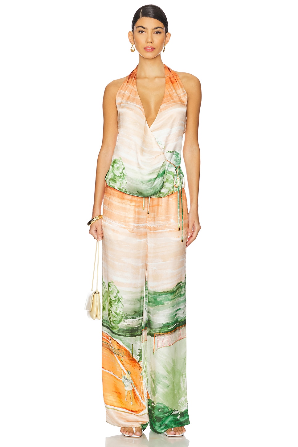 | Satin textile Imported Hand wash recommended Front wrap around drawstring closure Halterneck styling Lightweight satin fabric Made in China Revolve Style No. RAME-WS1 Manufacturer Style No. R25278.27RCB |