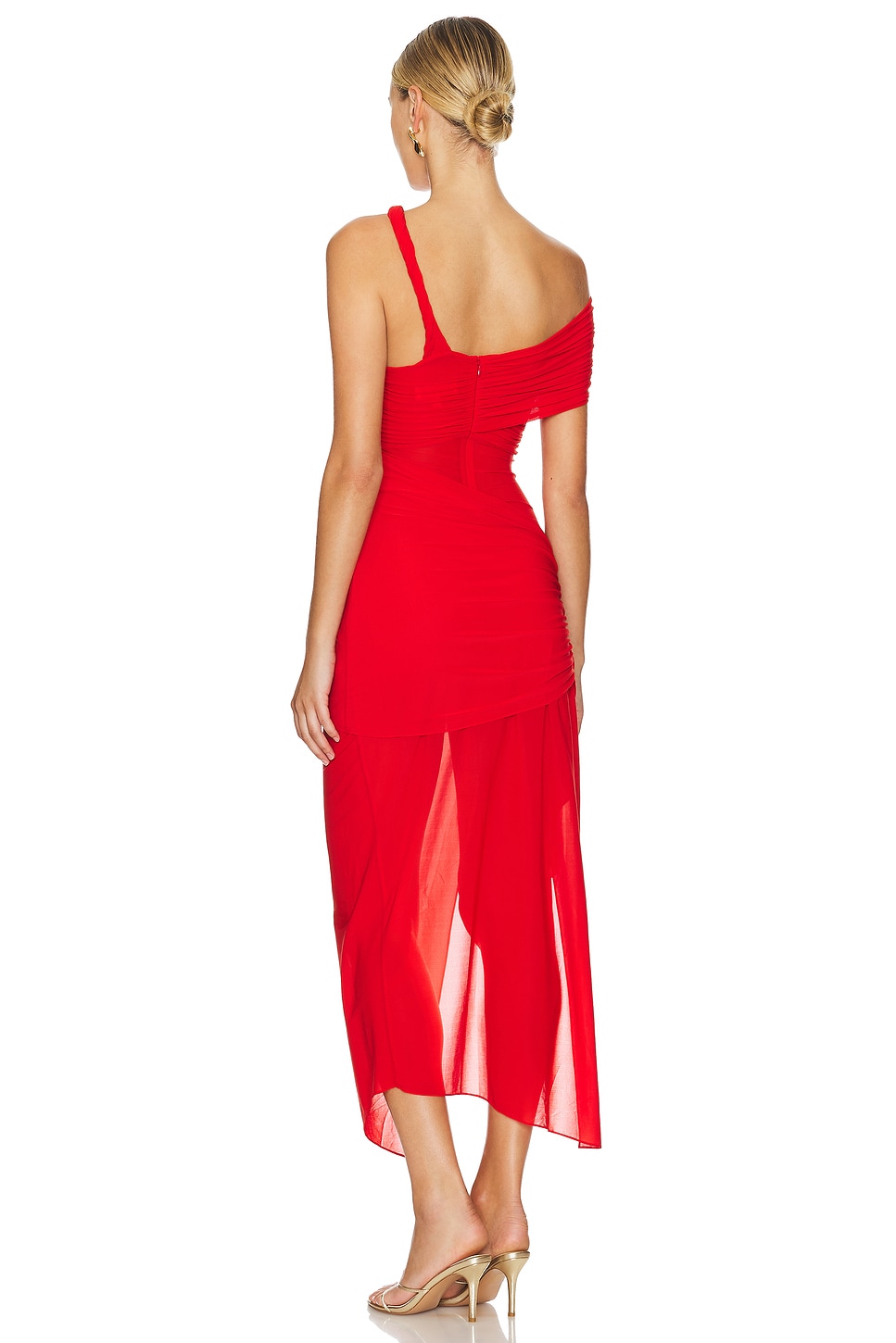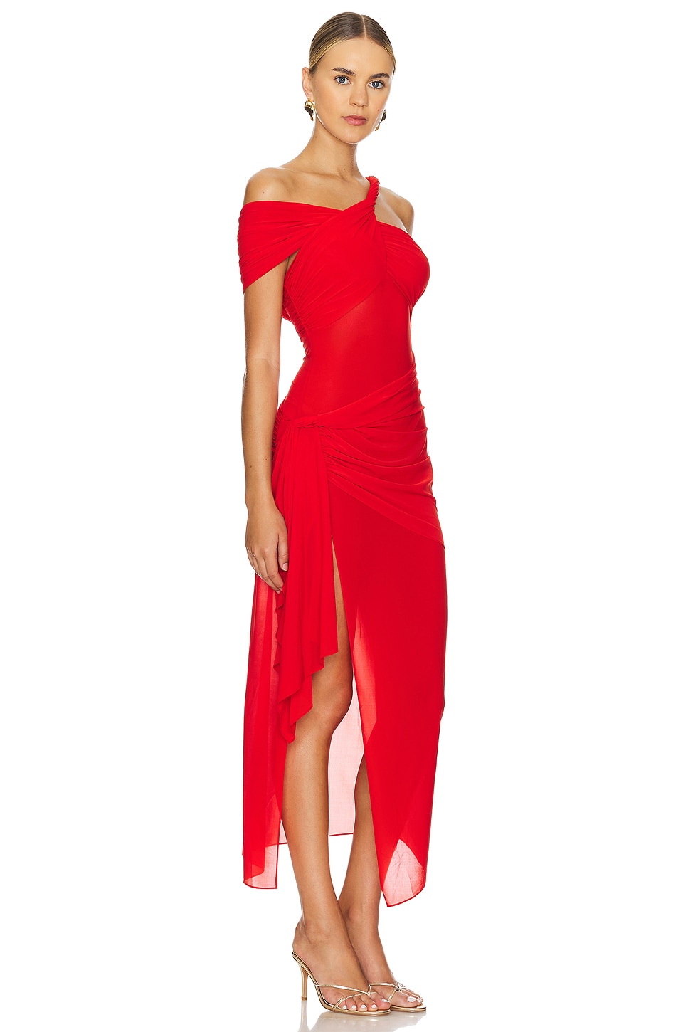 90% polyester, 10% spandex Made in China Dry clean Unlined Hidden back zipper closure Shoulder twist detail with draping and side seam slit Garment is made with a semi-sheer fabric, undergarments can show through Revolve Style No. RONR-WD694 Manufacturer Style No. 36-83876TJE Global brand Ronny Kobo makes headlines for its classic silhouettes, standout prints, and versatile looks. The brand's founder, Ronny Kobo, incorporates her international upbringing into her luxurious designs in order to craft pieces with a universal and ultramodern appeal. With influences from Hong Kong to New York City, Ronny Kobo produces looks that intertwine a delicate balance of trendiness and timelessness. With her cult-following on social media, Ronny redefines the modern woman with every design. Worn by celebrities such as Kim Kardashian and Nicky Hilton, Ronny Kobo is the go-to designer for confident and lavish globe-trotting women with an enviable imagination. |