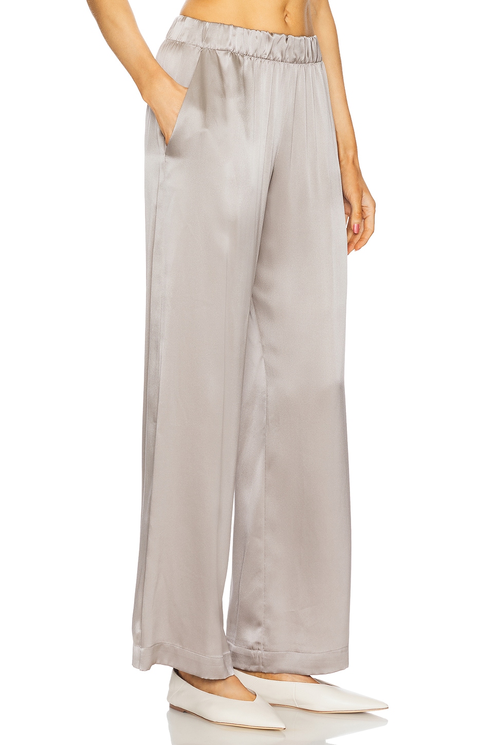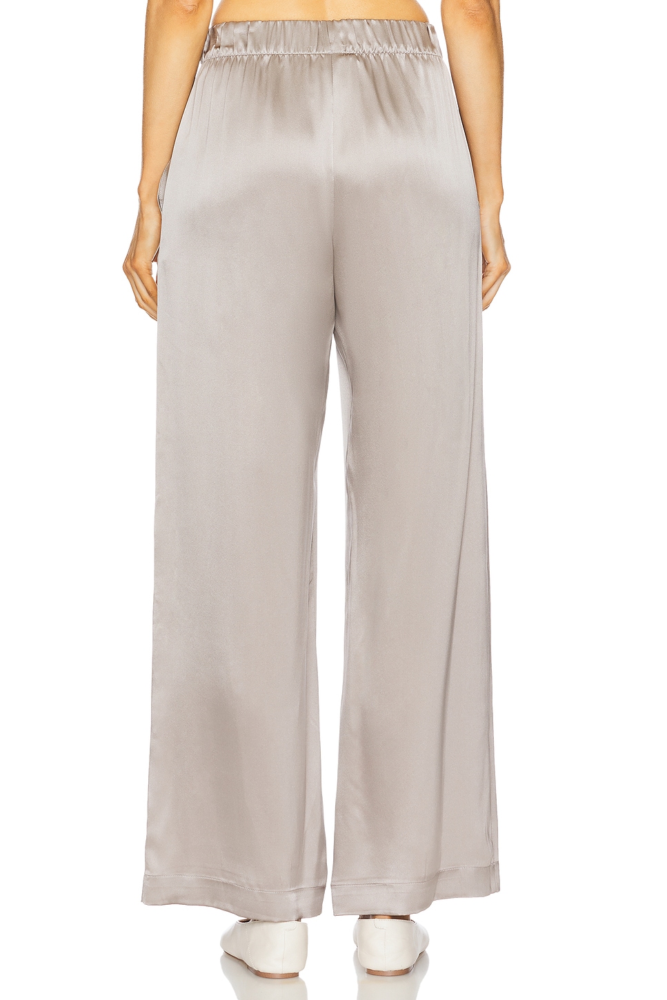 100% silk Made in USA Dry clean only Pull-on styling Side slant pockets Satin fabric 56 cm at the knee breaks to 58 cm at the leg opening Revolve Style No. SLYN-WP14 Manufacturer Style No. BRYNN2407 |