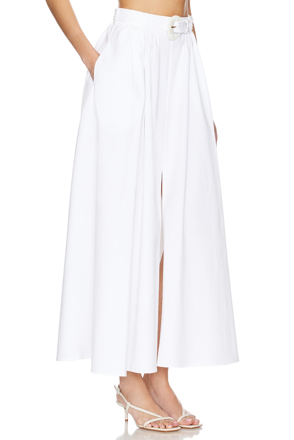 96% cotton, 4% elastane Made in China Dry clean only Unlined Hidden back zipper closure Detachable belt and side slit pockets Poplin fabric with front slit Waist to shortest hem measures approx 41 cm and to longest hem approx 97 cm in length Revolve Style No. SALN-WQ18 Manufacturer Style No. 2283522 |