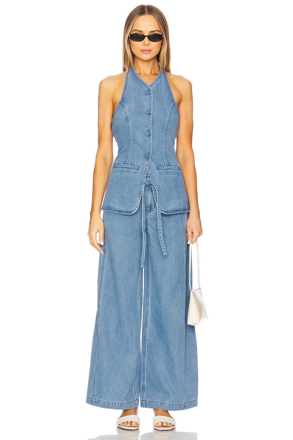 Shell: 59% cotton, 25.5% polyester, 15.5% viscose Made in China Machine wash recommended Zip fly with hook and bar closure Side and back pockets Detachable belt tie Item not sold as a set 66 cm at the knee and 66 cm at the leg opening Revolve Style No. SOVR-WJ3 Manufacturer Style No. SVS125028 |