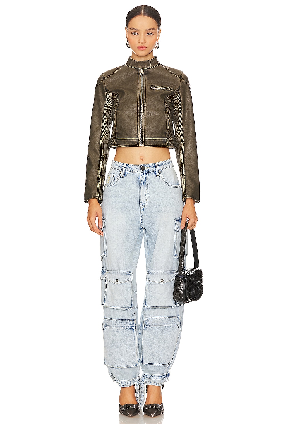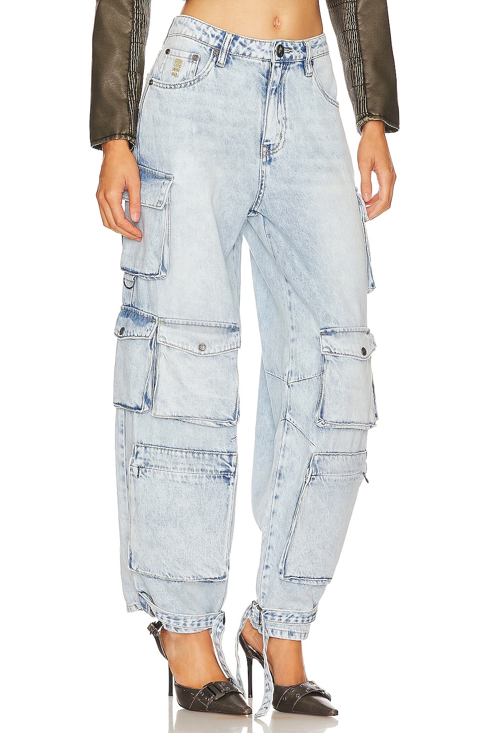 Cotton blend fabric Imported Machine wash recommended Zip fly with button closure 13-pocket styling includes eight cargo pockets Denim straps at hem with buckle Rigid denim fabric with signature embroidered logo 66 cm at the knee narrows to 51 cm at the leg opening Made in China Revolve Style No. ONET-WJ221 Manufacturer Style No. 26245 Australian designer Jamie Blakey sewed her first collection in her very own bedroom. Now, nearly a decade later, her Sydney-based line has found an international fan base. Known for clothing that is casual and beachy, One Teaspoon offers pieces that are effortless, cool, and still have that handmade feel. |