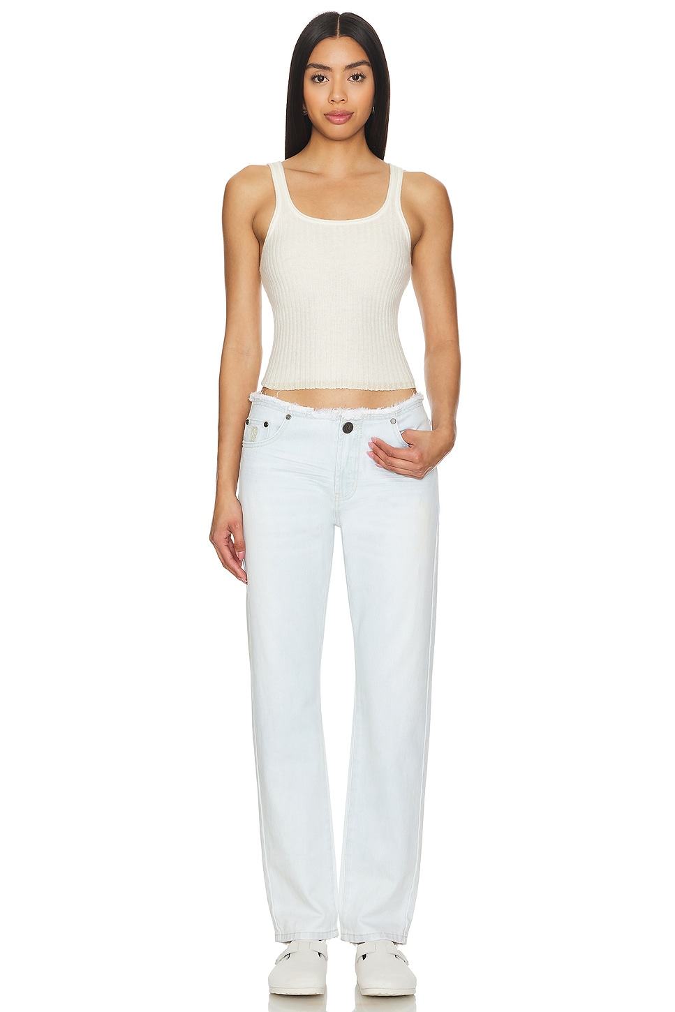 Main: 100% cotton Made in China Machine wash recommended Zip fly with button closure 5-pocket styling 20 cm at the knee narrows to 18 cm at the leg opening Revolve Style No. ONET-WJ225 Manufacturer Style No. 26383 Australian designer Jamie Blakey sewed her first collection in her very own bedroom. Now, nearly a decade later, her Sydney-based line has found an international fan base. Known for clothing that is casual and beachy, One Teaspoon offers pieces that are effortless, cool, and still have that handmade feel. |