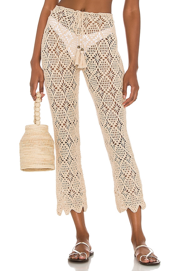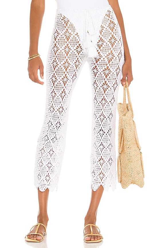 100% cotton Made in Indonesia Machine wash Drawstring waist with tassel ties Open-knit crochet fabric with hem slit Please note: undergarment not included 41 cm at the knee breaks to 43 cm at the leg opening Revolve Style No. TULA-WP217 Manufacturer Style No. TRP159 S21 Tularosa, the new LA-based label, is a refined vintage-inspired collection of romantic dresses, textural jackets, and embroidered tops designed for the wild at heart. |