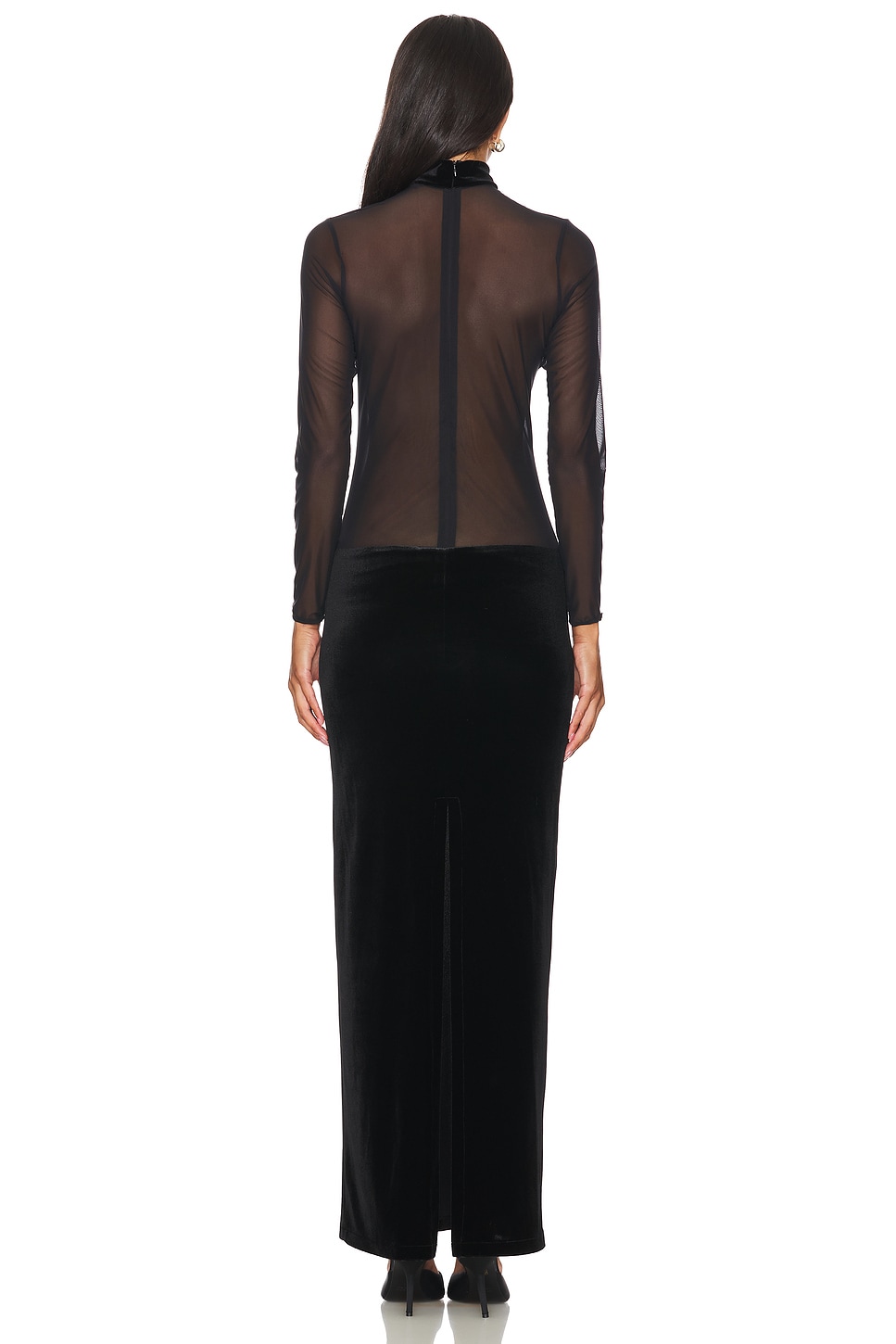 Main fabric: 90% polyester, 10% elastane Made in Poland Hand wash Unlined Hidden back zipper closure Back vent Velvet fabric with mesh back and sleeves Revolve Style No. UCOD-WD5 Manufacturer Style No. Stargirl-Dress-Black |