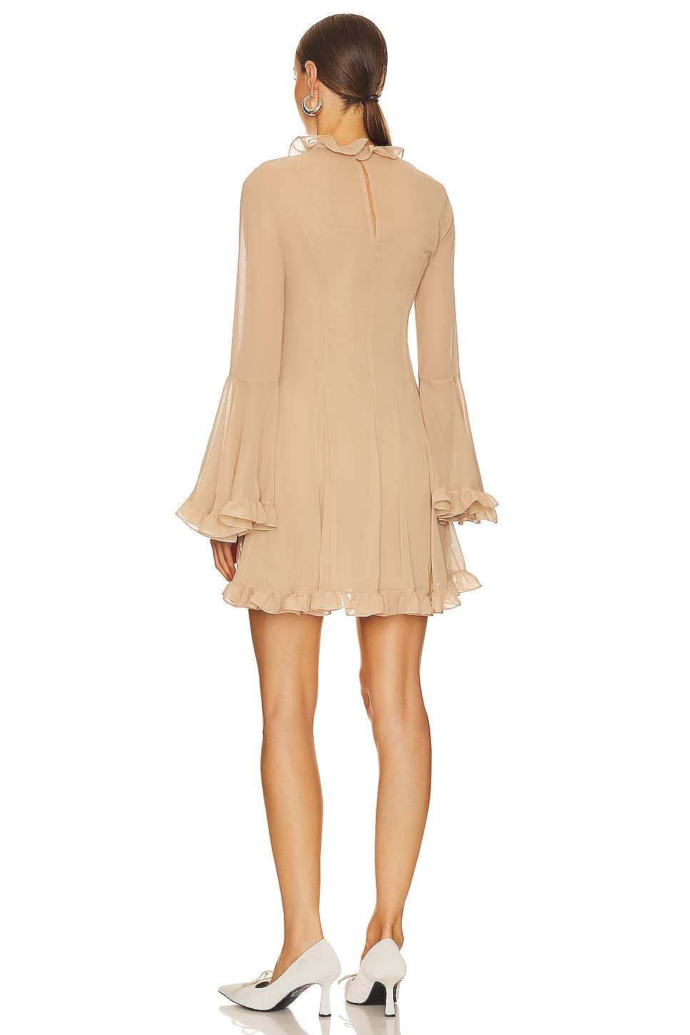 Self: 55% viscose, 45% polyester Made in Italy Dry clean only Detachable slip lining Back tie closure Flared sleeves Georgette fabric with ruffled trims Revolve Style No. VETT-WD5 Manufacturer Style No. VM2AB0024-TE010 |