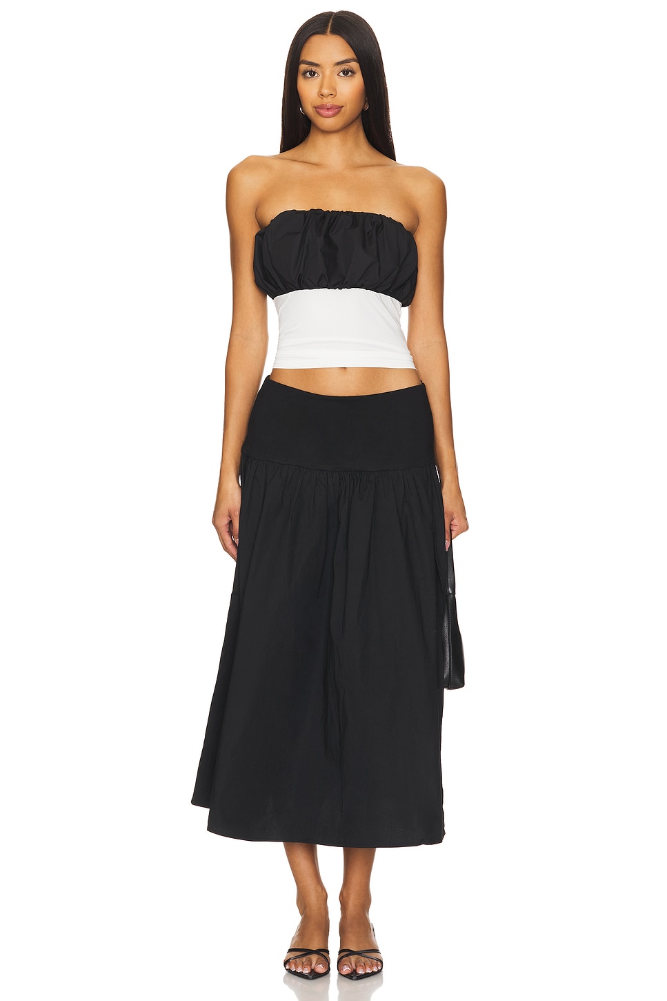 Self 1: 80% polyester, 20% cotton Made in China Hand wash Hidden back zipper closure Poplin fabric at bust Mesh fabric at bodice Revolve Style No. AAYR-WS149 Manufacturer Style No. ATS205 F24 |