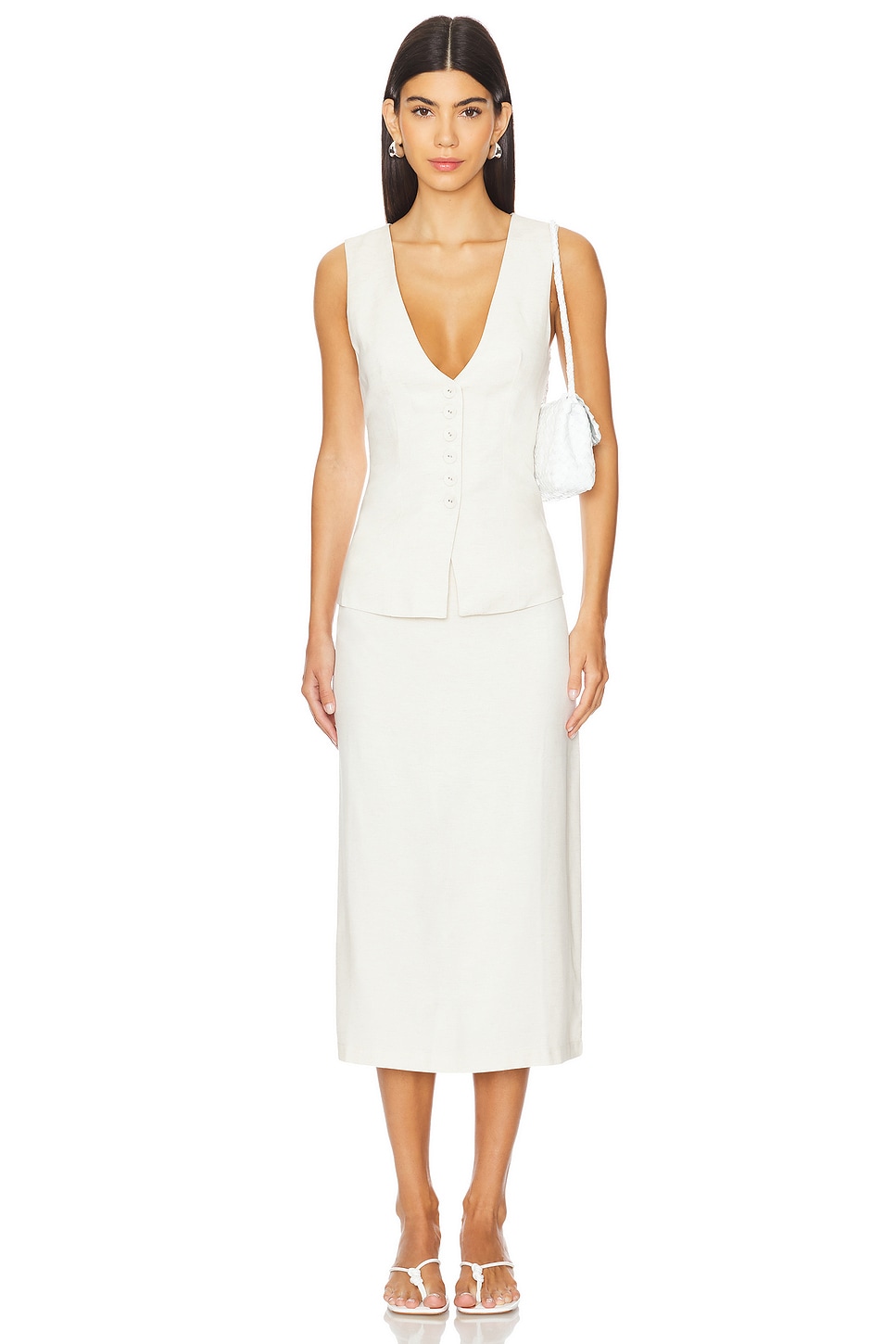 48% viscose, 40% rayon, 12% linen Made in China Hand wash Unlined Hidden back zipper closure Linen skirt Item not sold as set Skirt measures approx 84 cm in length Revolve Style No. WWWR-WQ73 Manufacturer Style No. WWB115-01 Danielle Bernstein is the founder and face behind world-renowned fashion blog @weworewhat. A native New Yorker, Bernstein started her career 10 years ago - leading the influencer industry into what it is today. In 2016, Danielle launched her line of overalls and jumpsuits, and later her successful swim line. She is now bringing both of her brands under one roof with the launch of shop WeWoreWhat. Her brand is consistently expanding with new categories like denim & activewear. |