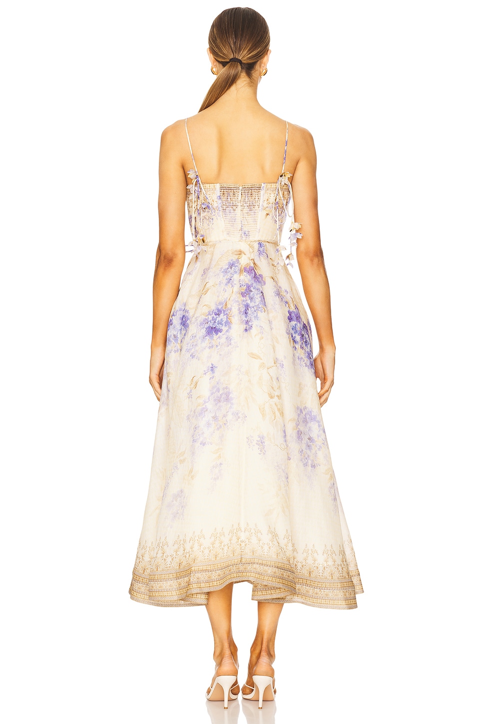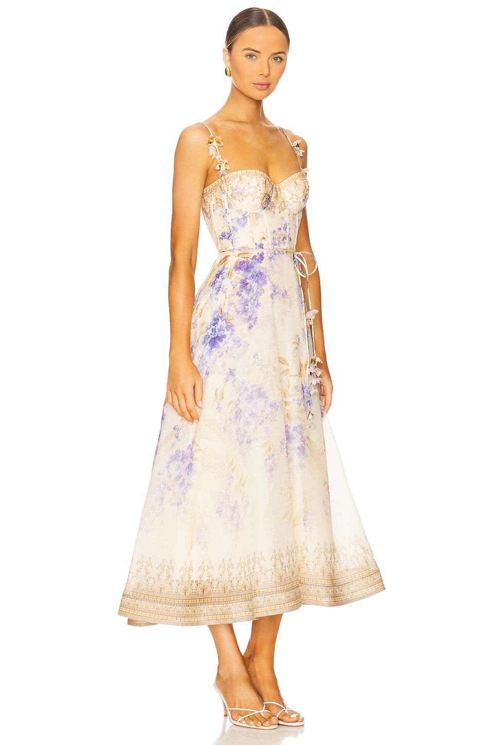 Self: 52% linen, 48% silk Made in China Dry clean Fully lined Adjustable floral shoulder straps with hidden back zip closure Side seam pockets Boned bodice on linen fabric Revolve Style No. ZIMM-WD580 Manufacturer Style No. 3885DS252 Founded as a ready to wear line by sisters Nicky and Simone Zimmermann, the label soon expanded into swimwear and won an immediate, loyal following among Australias tastemakers and trendsetters by being one of the first brands to fuse swimwear with fashion. The blending together of flattering, sexy silhouettes with bold color & print choices allowed Zimmermanns sculptural bikinis and one-pieces to become the new point of reference for haute swimwear while its ready to wear collection took their signature style from the beach to the streets. In addition to swim and ready to wear, Zimmerman has extended into kids and accessories, truly making it a lifestyle destination. |